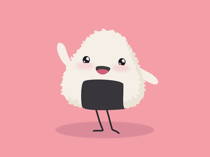 Character Animation of Onigiri Rice Ball in Kawaii look , for a Onigiri delivery Service.