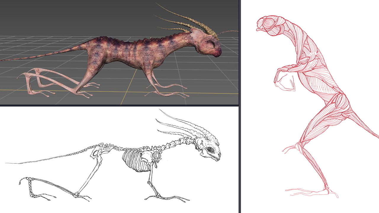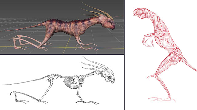 Here you can see private, unfinished work. I studied anatomy, made 3D Scans and also created an digital Set Extension, under the topic: science fiction creatures and sets.
