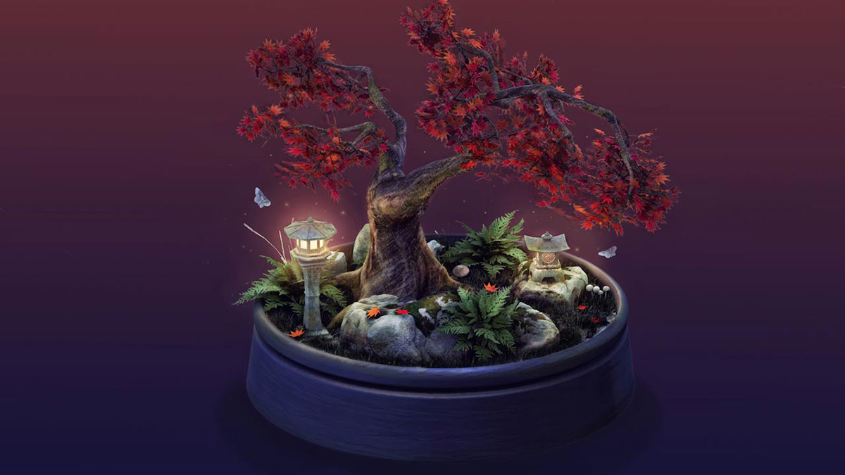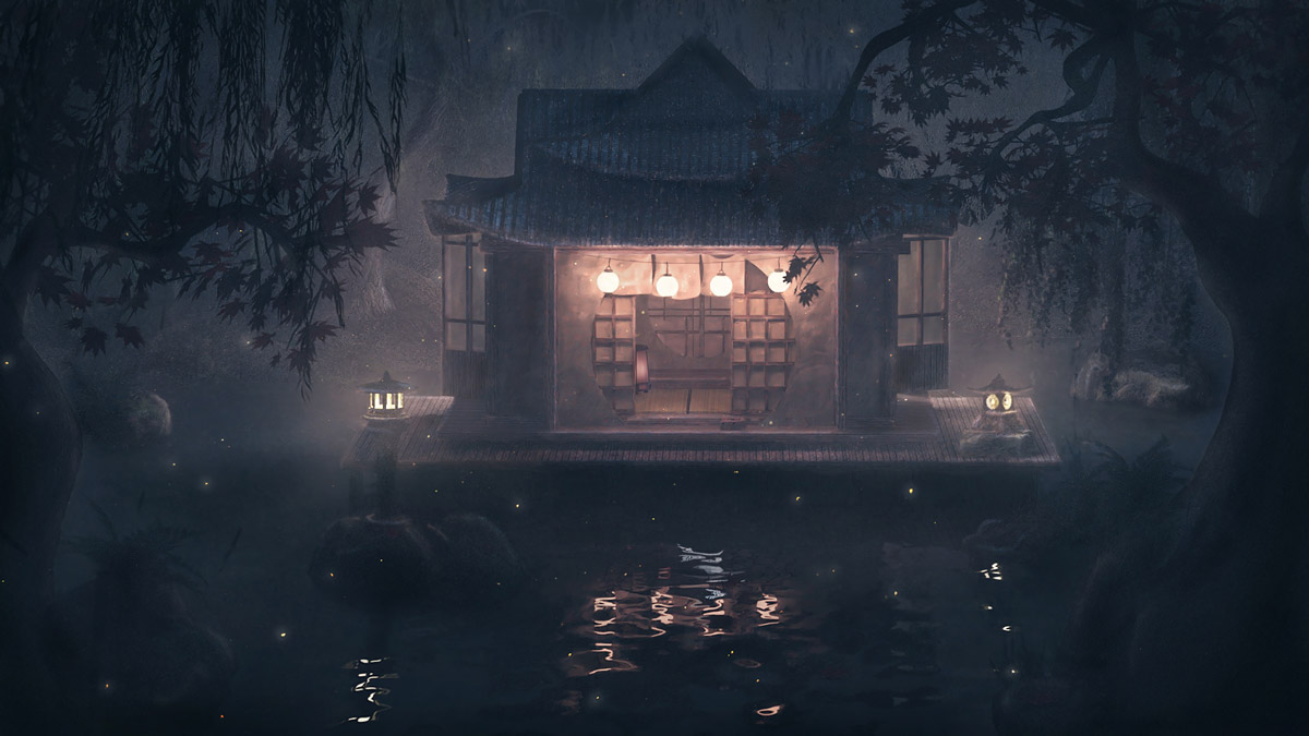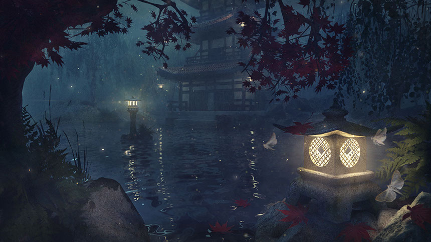 A Ryokan is a traditional japanese inn. Sometimes, they have a private outside onsen (bath), like this one. In this 3D Artwork, i wanted to create a peaceful place, that is almost magical.